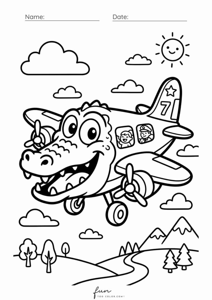 This Bombardiro Crocodilo printable collection supports every age group. Preschool children can enjoy simple outlines with clear shapes, smiling clouds, friendly birds, and easy to color backgrounds. These Brainrot Bombardiro Crocodilo Coloring Pages help improve fine motor skills, hand eye coordination, and creative confidence.