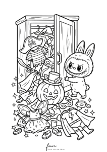 Labubu toy halloween coloring sheet