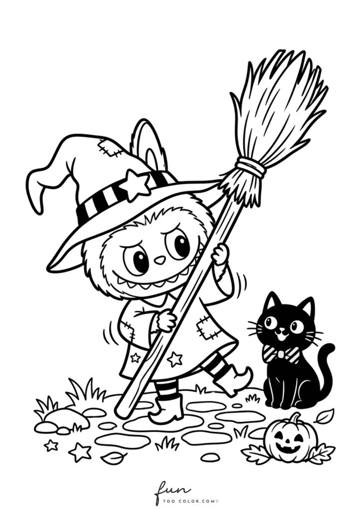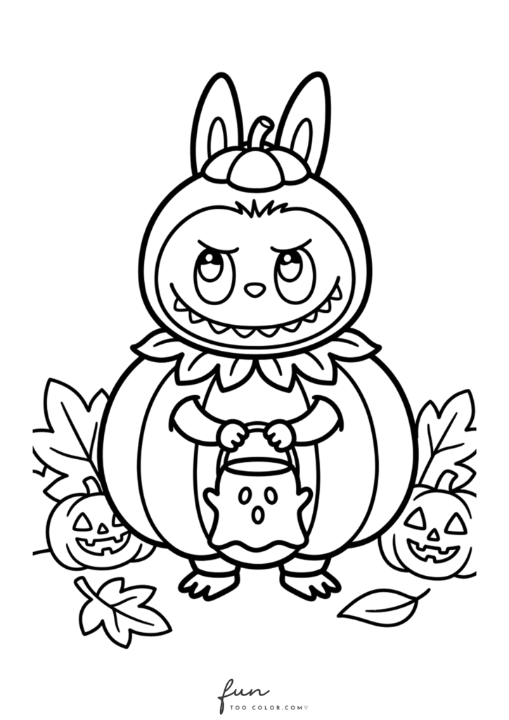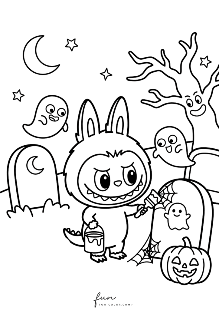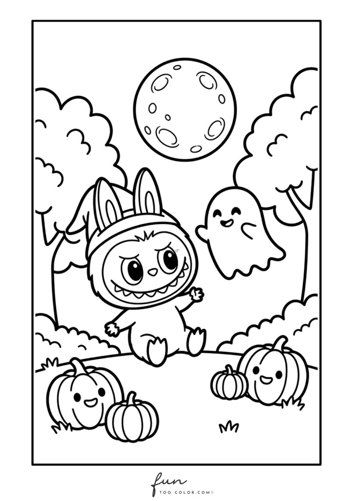 In this collection, you will discover many adorable Labubu Halloween coloring sheets that capture the spirit of the holiday. Labubu appears wearing a witch hat, hiding behind a glowing jack o lantern, playing with tiny ghosts, and exploring spooky but friendly Halloween scenes. Each illustration highlights Labubu’s quirky personality and cartoon monster charm, making every page entertaining and imaginative for children and coloring fans.