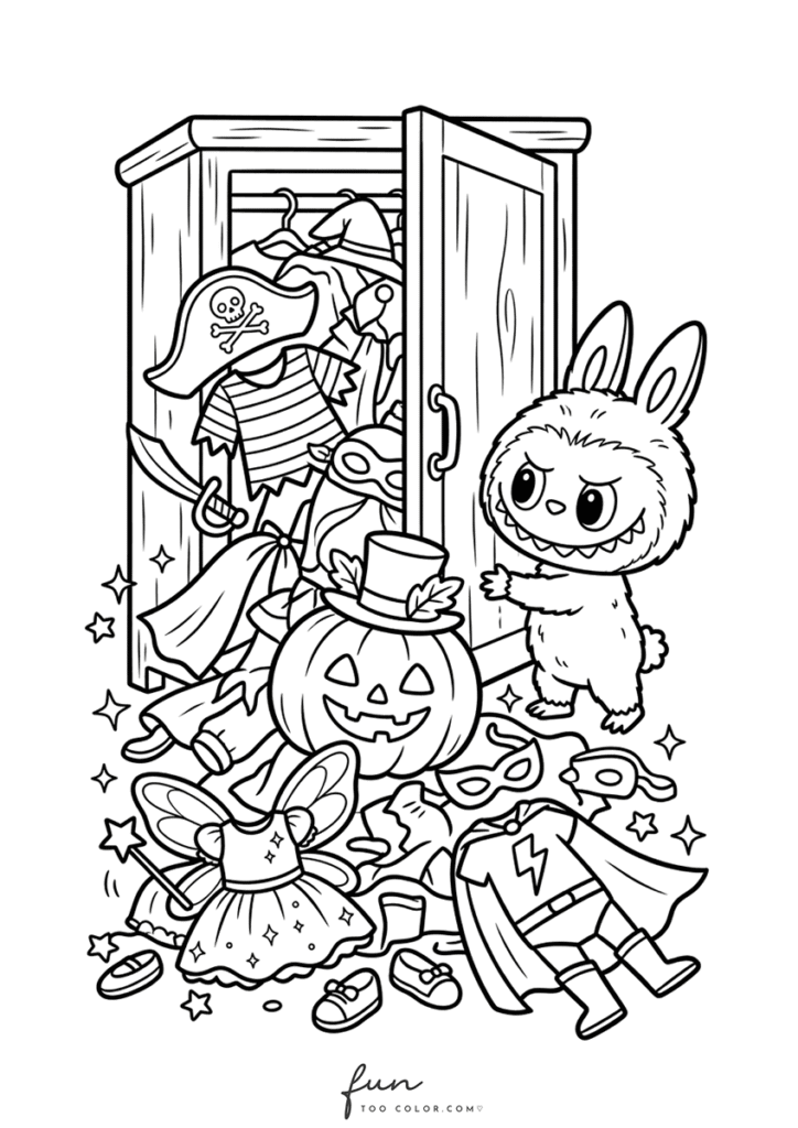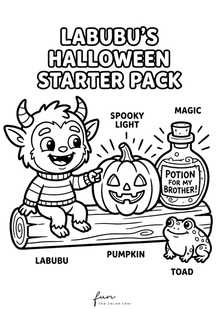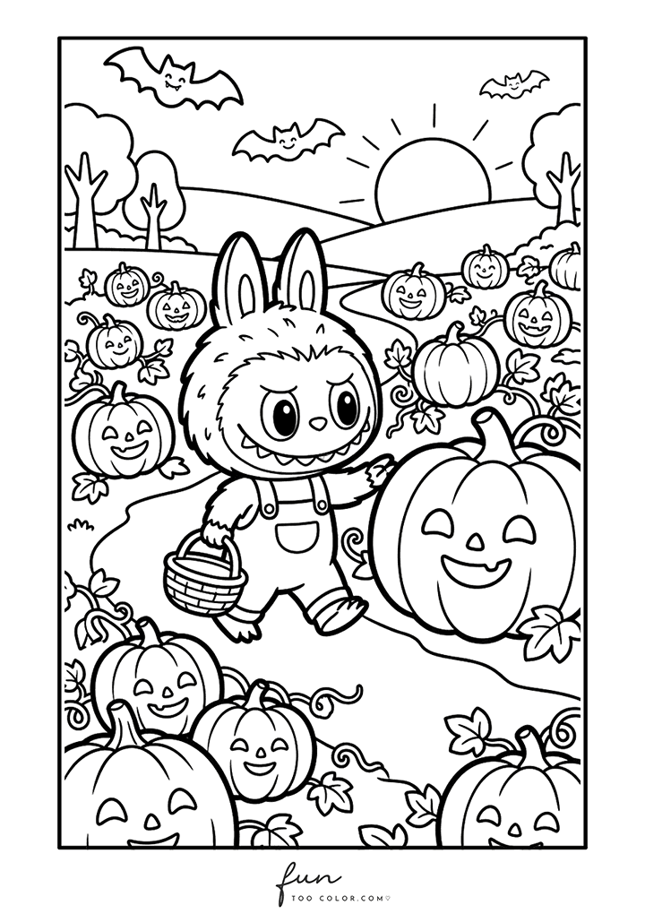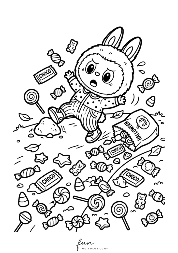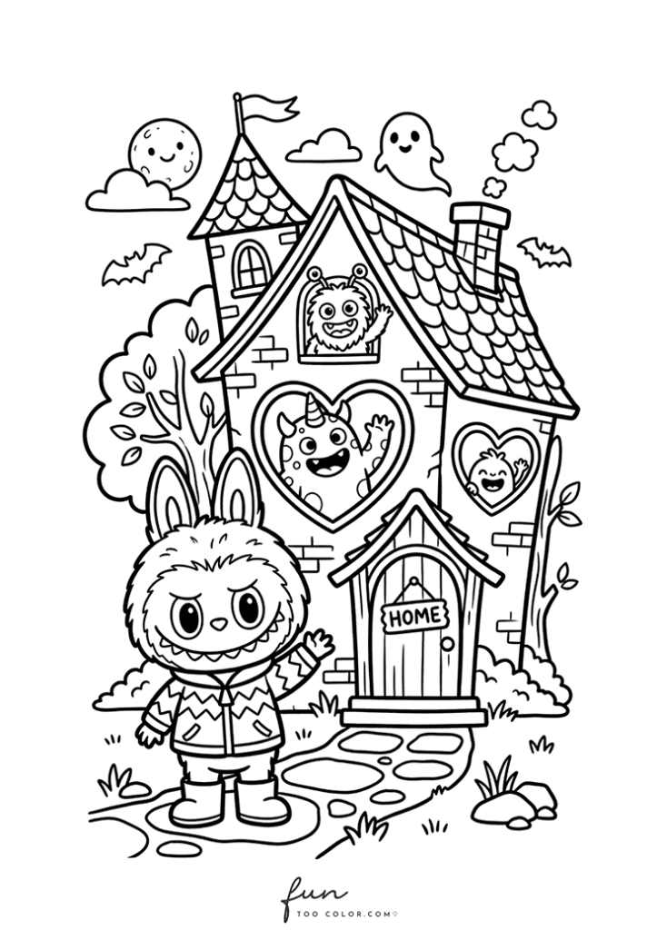 In this collection, you will discover many adorable Labubu Halloween coloring sheets that capture the spirit of the holiday. Labubu appears wearing a witch hat, hiding behind a glowing jack o lantern, playing with tiny ghosts, and exploring spooky but friendly Halloween scenes. Each illustration highlights Labubu’s quirky personality and cartoon monster charm, making every page entertaining and imaginative for children and coloring fans.