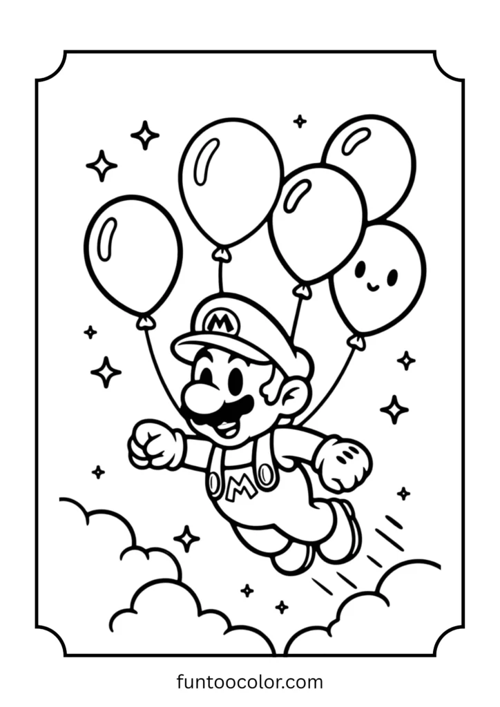 Mario Flying ballons Coloring page