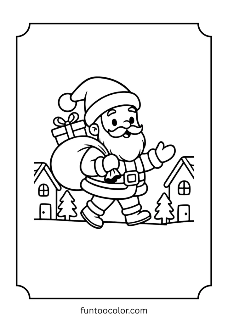 Santa going to houses to give gifts